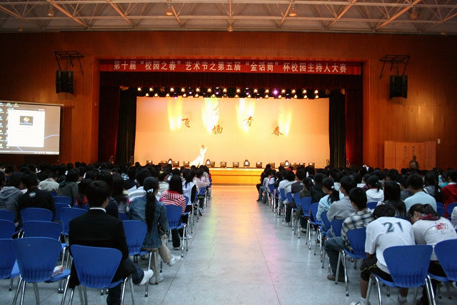 4月25日晚,由校团委主办、葡萄酒学院承办的第十届校园之春文化艺术节之“金话筒”主持人大赛在南校绣山活动中心隆重举行,葡萄酒学院常务副院长沈忠勋、党委宣传部、校团委等有关单位同志出席了大赛。