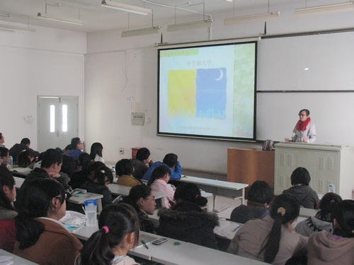 符丹老师就新生如何适应大学生活这一问题从学习、人际、思维三个方面与大一学生进行了交流。她指出学生不适应大学生活的主要原因是目标的缺失。对于学习,新生应尽快从高中被动填鸭式的纵向学习方式转变为大学主动自助餐式的横向学习方式,以达到横纵相辅相成、连缀成网的目的。其次她建议大一新生应建立公平、尊重、互惠、自我表露的人际关系,真正拥有一个满足生存需要和心理需要的健康的人际关系。同时,对于大学生恋爱问题,她提倡大学生应持有“不轻易牵手,不轻易放手”的正确恋爱观。谈到思维她呼吁大家要真正做到“实”、“动”、“做”三个字,即学习踏实、精神充实、态度务实、工作扎实,在计划后要付诸实际行动,并认真做、努力做、坚持做。讲座期间,符丹老师还带大家做了一些心理小游戏,在轻松愉快的氛围中为同学们分析大学生因对比失衡而产生自卑心理这一普遍现象,并通过小故事告诉大家要克服心理问题,具有“我决不放弃”的心态。最后,她对此次报告会作了总结并表示希望大家能够快乐、充实的度过大学时光。