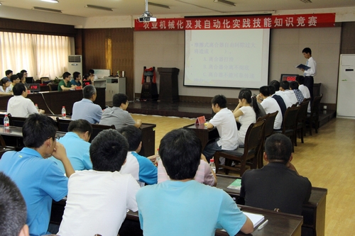 为了创新教学方式,营造良好学习氛围,进一步巩固和提高学生所学专业知识和基本技能,在学校教务处、团委及机电学院党政领导支持下,机电学院农业工程系设计了竞赛教学的方案、组织多名资深专家教授命题,在车辆驾驶实习及机械装备拆装实习后,举办了一次别开生面的实践技能知识竞赛。