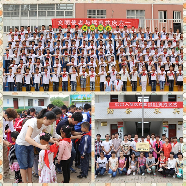 30日上午,志愿者们来到揉谷中心小学,用精心编排的节目为同学们带来了一个愉快的节日。下午,志愿者们参加了官村小学少先队员入队仪式,为一年级的孩子佩戴红领巾,并举行了食品学院团工委与官村小学“共建春雨工程基地”签字仪式。仪式结束后,队员分别到各班级与孩子们一起欢庆六一,共同渡过了一个欢乐而难忘的节日。