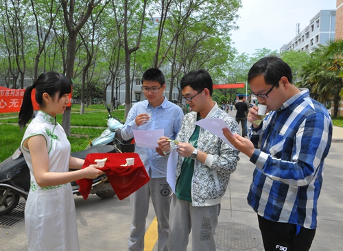 活动的最后一个环节是品茶赠茶活动。茶艺队员们向各位同学赠送泡好的茶,传达了品茶爱茶的理念。同时还开展了“答题赠茶叶”活动,在增长茶文化知识的同时,也让同学们在品茶的同时感悟茶道的真谛、更加深入地了解茶文化。