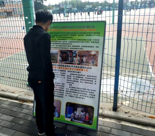 为使同学们了解三下乡活动的开展形式及意义,向学校展示我院三下乡队员风采,提早培养大一同学对于三下乡活动的兴趣、吸引更多的同学参与暑期实践活动,食品科学与工程学院于11月初在篮球场展出了2016暑期三下乡成果展板并引起同学们的广泛关注。