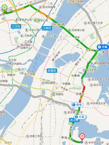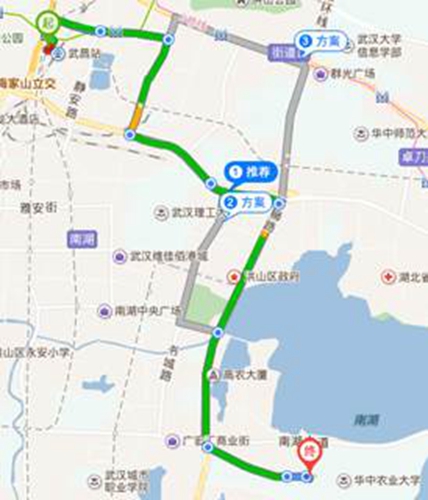 4. 武昌火车站到会议地点打车路线:约35 min,11 km,30元。